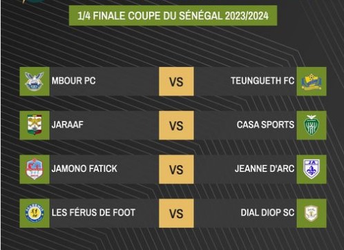L’attraction des quarts de finale de la Coupe du Sénégal, qui se tiendront les 4 et 5 juin prochains, est l’affiche Jaraaf-Casa Sport et Mbour PC vs TFC.