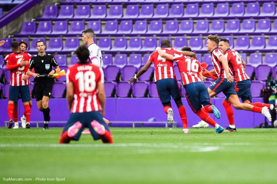Mené (1-0) à la pause, l’Atlético Madrid n’a pas tremblé pour remporter samedi le titre de champion d’Espagne au nez et à la barbe du Real Madrid grâce à un succès sur le terrain du Real Valladolid (2-1), lors de la 38e et dernière journée de Liga. Oscar Plano (18) a ouvert le score pour le Real Valladolid et les Colcheneros ont renversé le match grâce à Angel Correa (57e) et Luis Suarez (67e).
