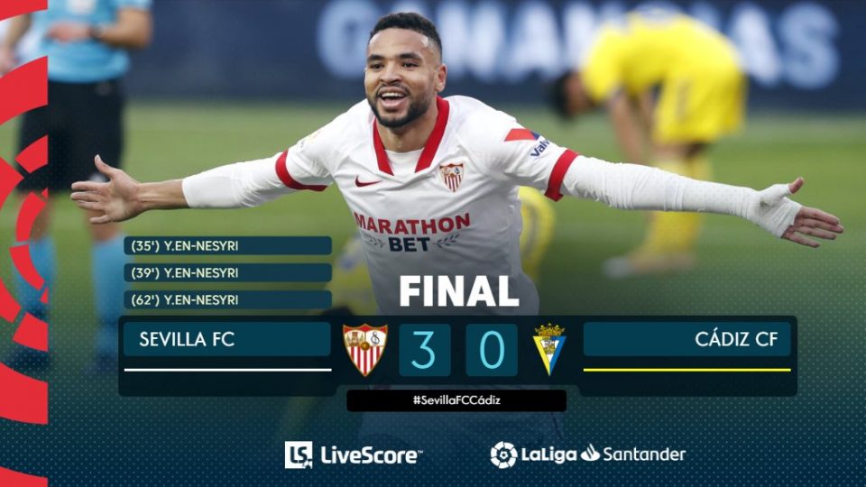 Les hommes de Lopetegui ont réalisé une belle opération en s’imposant contre Cadix (3-0) grâce à son homme en forme, Youssef En-Nesri auteur d’un triplé (35e, 39e et 62e). L’attaquant marocain devient le nouveau meilleur buteur de la Liga avec 12 buts en 19 matchs.