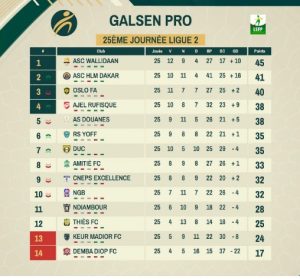 Conséquence de ce verdict : Hlm compte désormais 41 points (+16) à une journée de la fin. Wally Daan (42 pts), actuel leader, a également déjà validé sa montée. Oslo (40 pts+2), Ajel (38 pts+9) et AS Douane (39pts+5) se battront pour les deux derniers tickets.